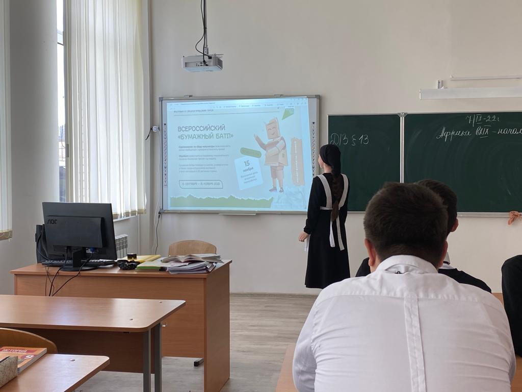 В "МБОУ "СОШ Мир-знаний" с.Герменчук" среди 8-9 классов в рамках сопровождения национального проекта "Экология" с целью формирования экологической культуры у подрастающего поколенияи населения в целом, была проведена Всероссийская акции по сбору макулатуры #БумБатл