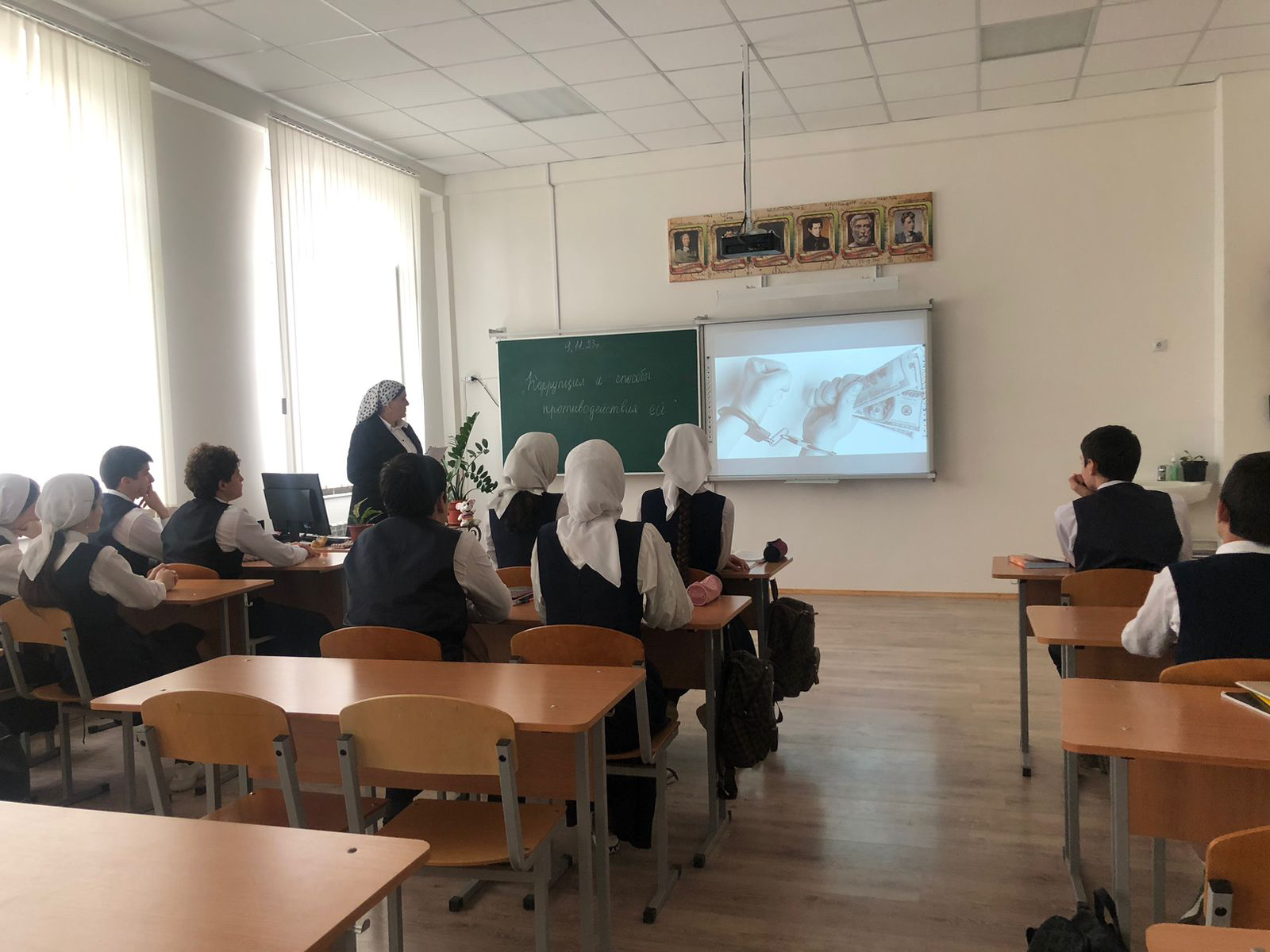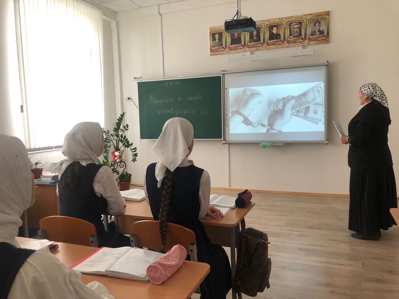 Отделом в Шалинском районе УФСБ России по Чеченской Республике совместно с МУ «Отдел образования Шалинского муниципального района Чеченской Республики» проведено профилактическое мероприятие в МБОУ «СОШ «Мир знаний» с. Герменчук» на тему: «Коррупция и способы противодействия ей».