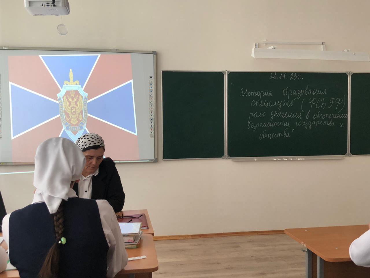Отделом в Шалинском районе УФСБ России по Чеченской Республике совместно с МУ «Отдел образования Шалинского муниципального района Чеченской Республики» проведено профилактическое мероприятие в МБОУ «СОШ «Мир знаний» с. Герменчук» на тему: «История образования спецслужб (ФСБ РФ), роль и значение в обеспечении безопасности государства и общества».