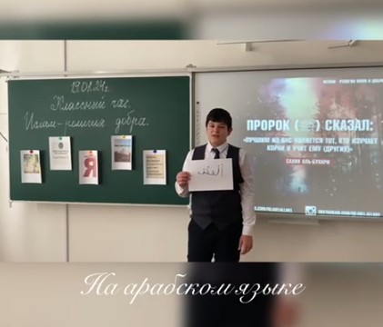 В рамках реализации федерального проекта «Успех каждого ребенка» национального проекта «Образование» и в целях формирования представления об основных религиях мира у учащихся 10 «А» МБОУ "СОШ "Мир знаний" с. Герменчук был проведен классный час на тему: «Ислам- религия мира и добра». Классный час провела Ааева А. С-Х. Она провела беседу о мировых религиях. В ходе классного часа рассказала о главных мусульманских праздниках, продемонстрировала видеоролик мечетей Чеченской Республики,а также учащиеся показали как на разных языках звучит слово "добро".Заканчивая свой классный час классный руководитель пожелала, чтобы верили в силы Всевышнего и учились уважать и любить даже тех, кто по вашему мнению недостоин этого. В нашей школе работа по духовно- нравственному воспитанию обучающихся уже на достойном уровне. Мы часто проводим классные часы, беседы , открытые мероприятия. "Очень важно не упускать воспитание детей в подростковом возрасте" -отметила зам по ВР Дадаева Х. М.